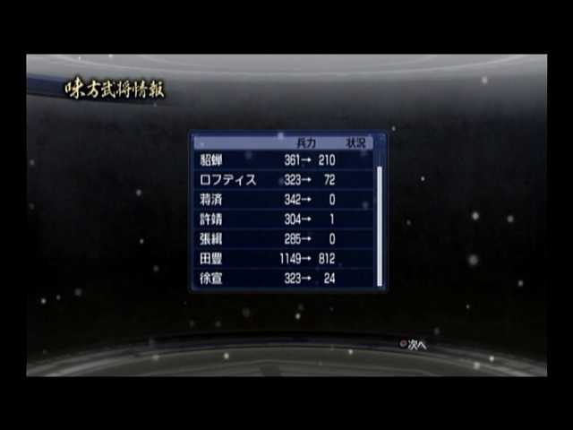 攻撃を余儀なくされ、何度となく発動された無双乱舞や事前に出ていた精鋭騎兵(敵の)が物凄く邪魔で、何と普通で体力黄色