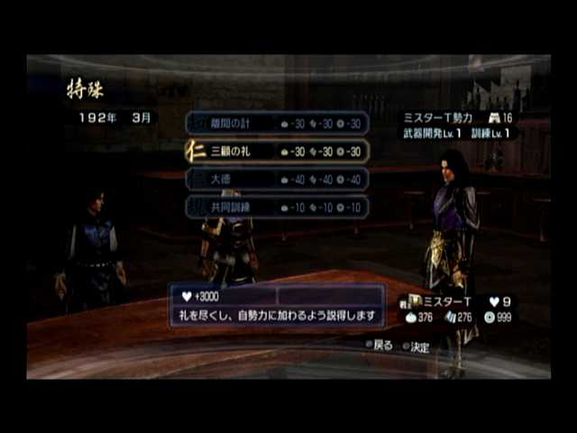 天命の誓い・1回目、このデータの極めプレイを開始。初めて「仁愛コマンド・三顧の礼」を使ってミスターSI君を獲得した