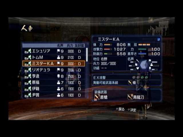 ここはMyエディットからの選りすぐりを選ぶしかありません。ただ一般武将がチョウメイさんだけというのが何とも@@;