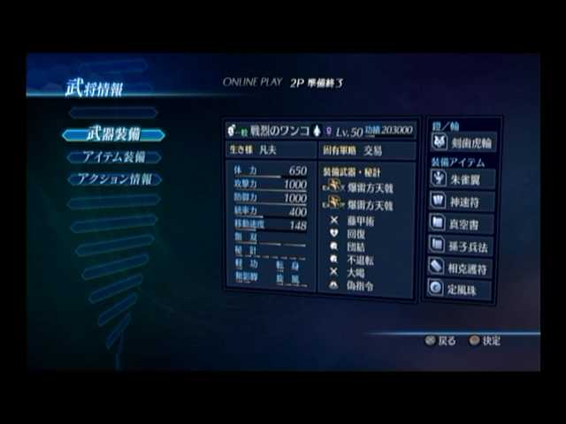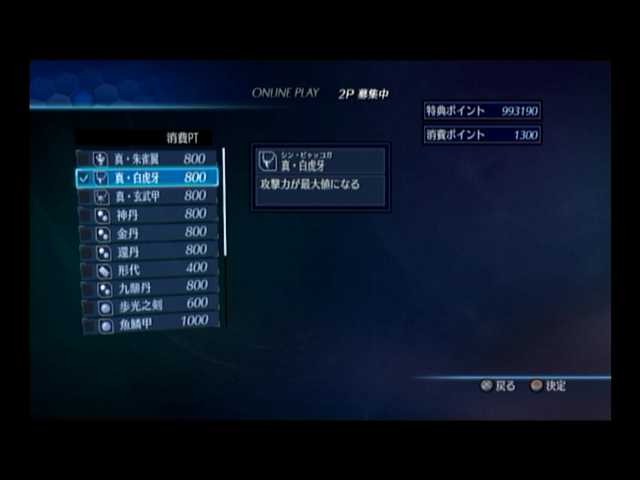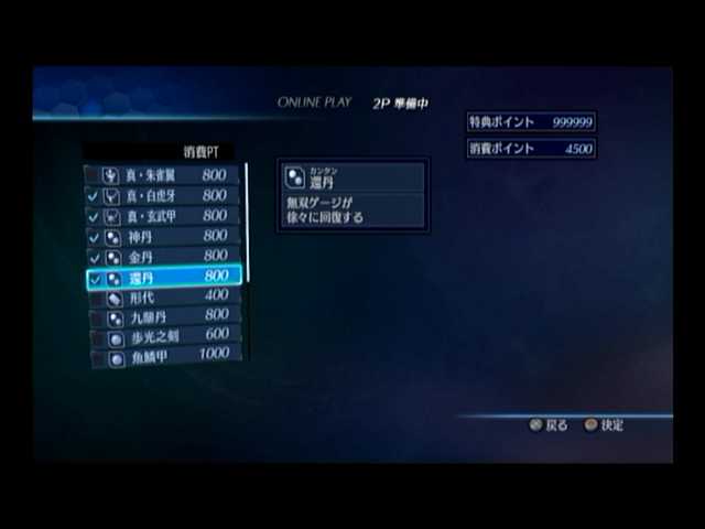 電光石火では、「攻撃力最大」「防御力最大」「秘計ゲージ自動回復」「体力自動回復」「乱舞ゲージ自動回復」、そして