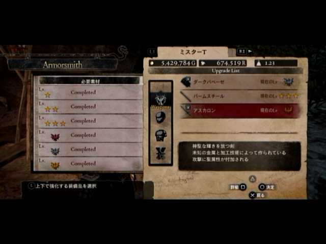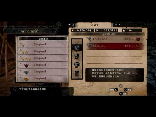 そうそう、アスカロンとエルハーベンの2大武器のLV6が完成。足りない材料はモンテバンクさんにより贋作増殖。当然1回
