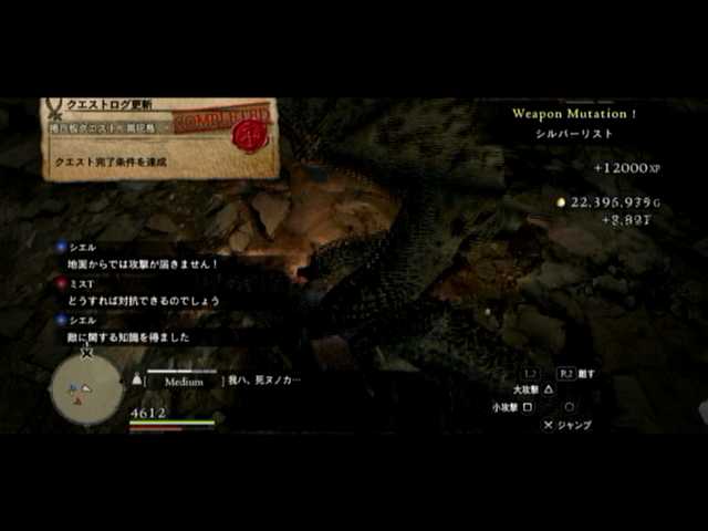 さて、帰還後は蒼月塔に直行。頂上にいるクエスト用・強化版ワイバーンさんと対峙。彼を下してクエストを終了させ、周回では