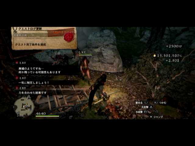 昨日の続き、石切り場を抜けて(同内で4人のNPCの友好度を最大に)護衛クエストも終了。その状態で昨日は終了。ええ、