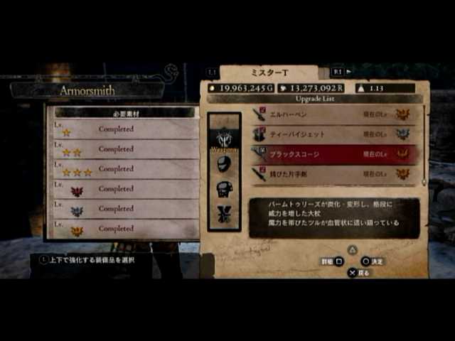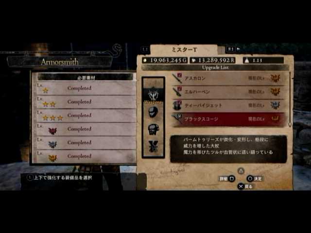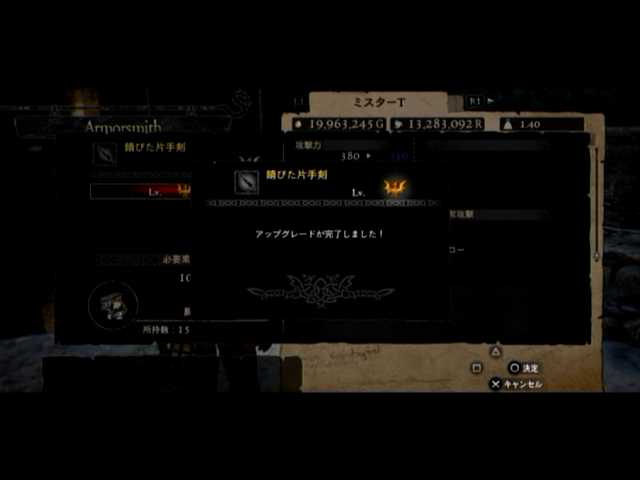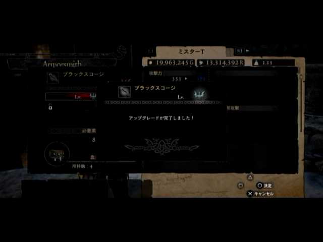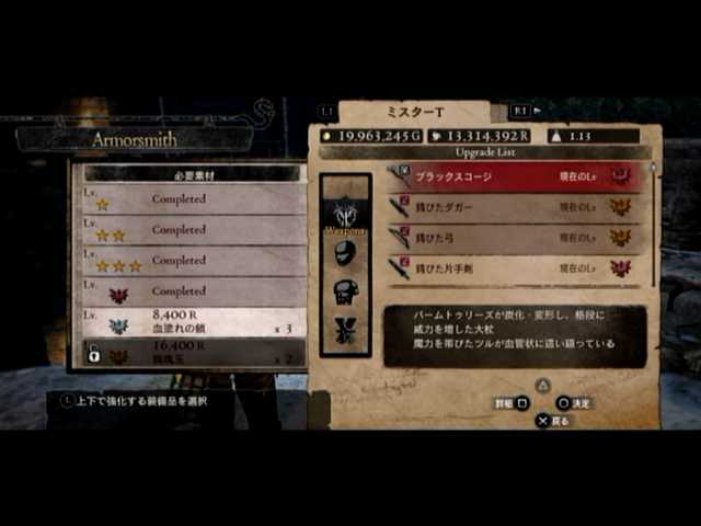 経由で素材の複製が済んだのを見計らい、黒呪島に赴き「ブラックスコージ」(と「錆びた片手剣」)のLV6強化に@@b