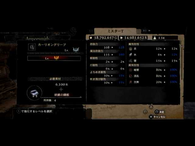 最後に。カーリオングリーブとアデプトマントをLV6に。特に前者は飛竜のブーツと背信のアンクレットと超える性能を誇る