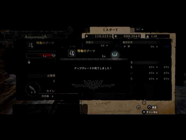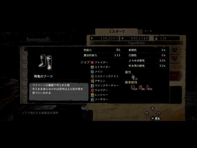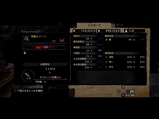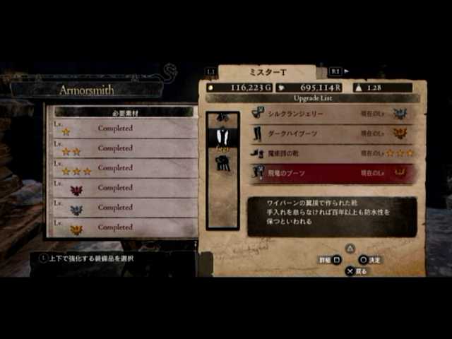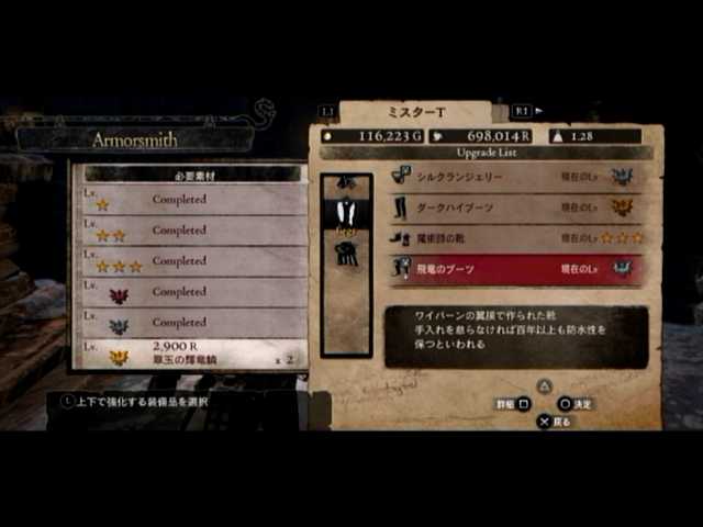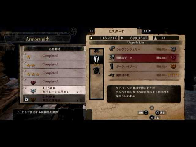 4つ目で飛竜のブーツが出現。ダークハイブーツを超える性能と見た目を誇っているため、こちらに切り替えたメインポーンと。