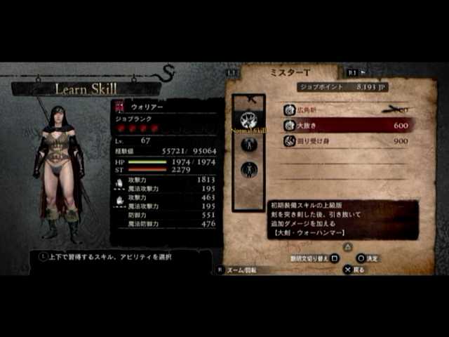 後は各種のスキル習得ですが、とりあえず覚者さんをウォリアーに、マイポーンさんをメイジにしてジョブ稼ぎをば。特に覚者