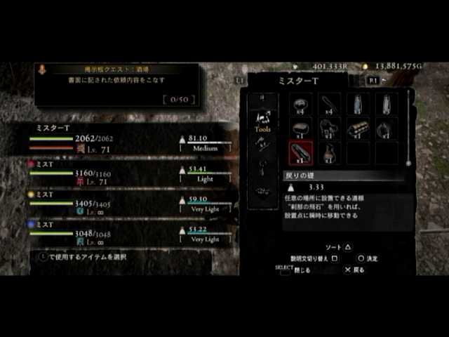 戻りの礎を配置できました@@b これで何時でも指定場所に飛べます><b まあ静止画像撮影機能の喪失は痛いですが、