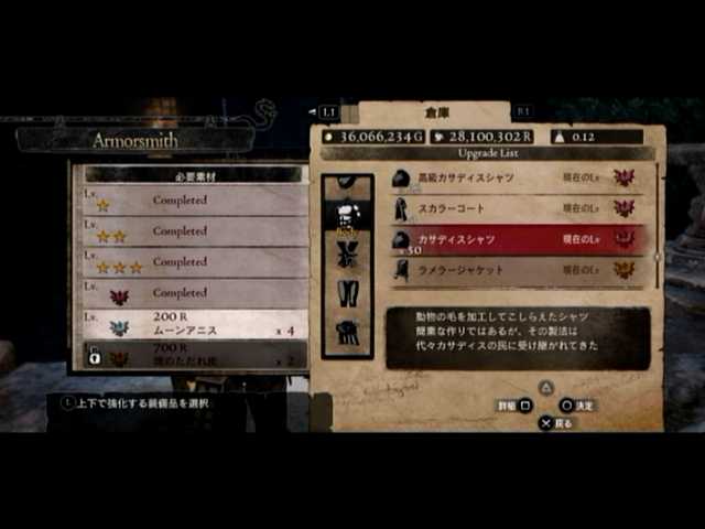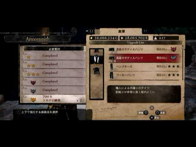 密輸を行い、ファースト武器防具の強化を。というか驚いたのが、ヘルムバルテダガーとデーモンフラメアのLV6時の火力差。