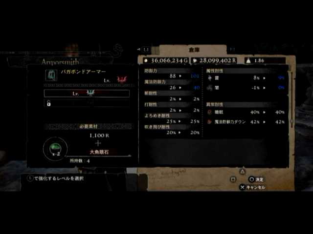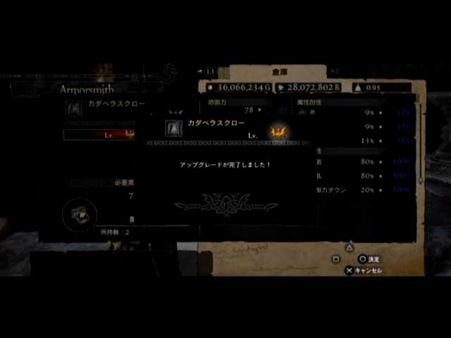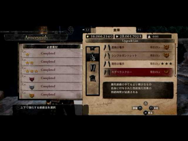 まあ後は防具郡の強化ですが、エロス装備の入手が困難なのが何とも@@; やはりカダベラスグリーブ積載量20kgが出ない