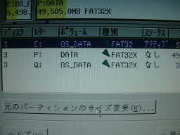 元のパーティションのサイズ変更」をクリックして下さい。