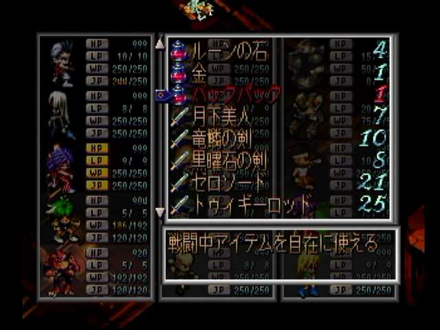 あと、流星刀・黒曜石の剣・月下美人・重粒子砲の入手がミソかと。HPが上がる獲物がないと厳しいですし。特に同シナリオは