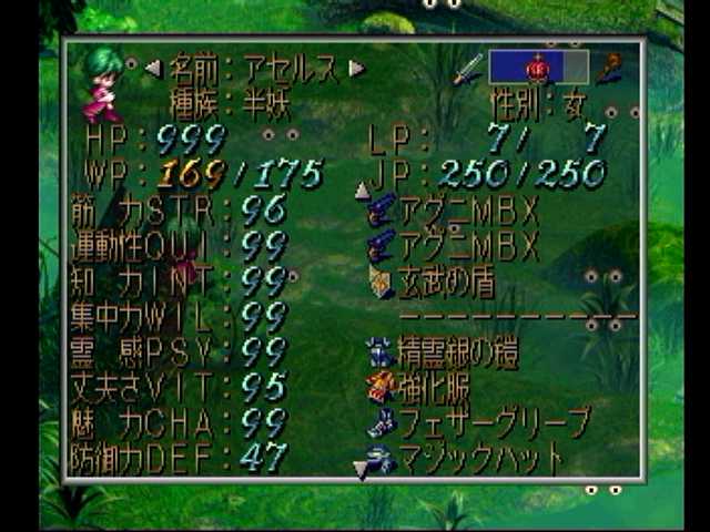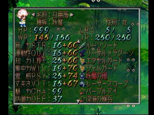 カンストしました@@b 攻略本では彼女の能力アップはかなり厳しいとの事ですが、それを覆す各種ハメは脅威ですわ><;