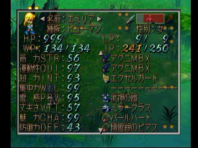 レッド編改・沼地ハメ10日目。エミリアさんのJPと魅力がカンストに@@b ただ知力と霊感がカンストしておらず、体術に