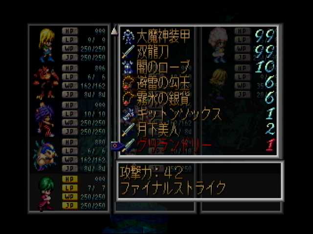 ピンぼけだらけで話になりませんでした@@; あと、下記クーン編改と同じく、アセルス編改もアイテム欄の調整をしました。