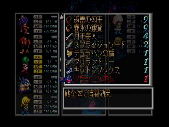 サンダーさんがLP0の昏睡状態だったのでリセットと@@; よって、超殺風景の最終リザルト(アイテム画面など)のみと