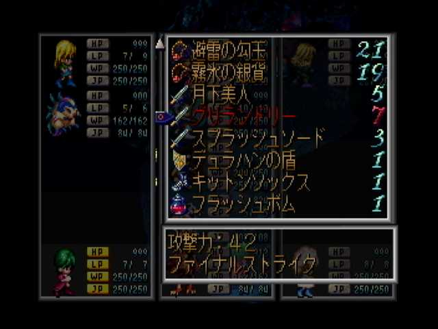 リザルトと。クーンさんがLP2と超危険な状態でした@@; 主人公で種族がモンスターなのは彼だけなので、その分LP消費