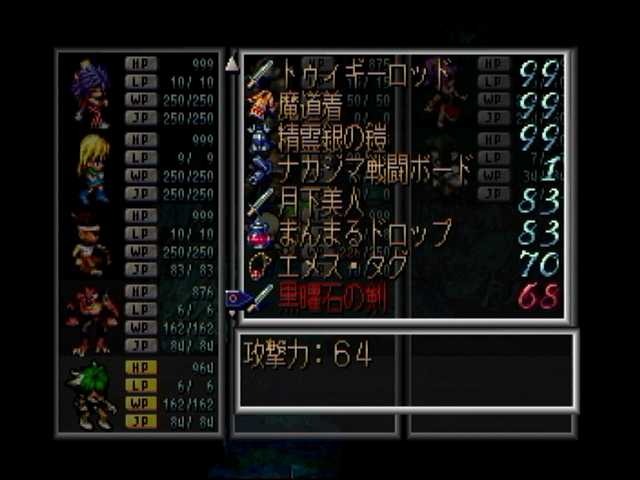 クーン編改・武王の古墳ハメ160日目。上記アセルス編改に対して、こちらは黒曜石の剣のみです@@; 他も横ばいとあまり
