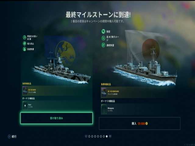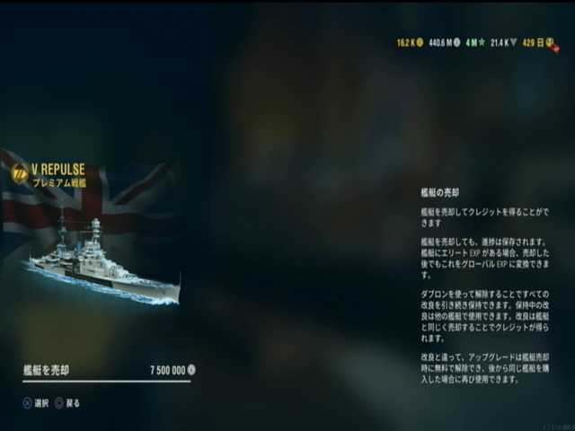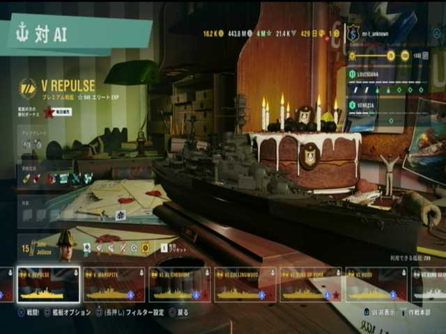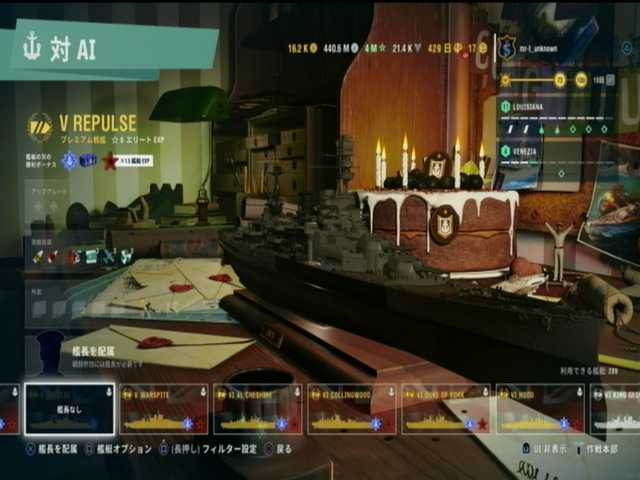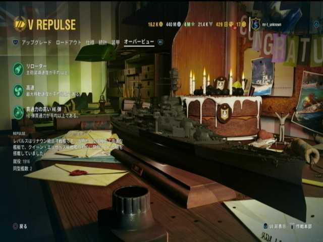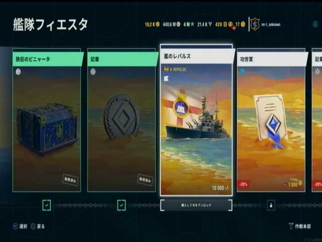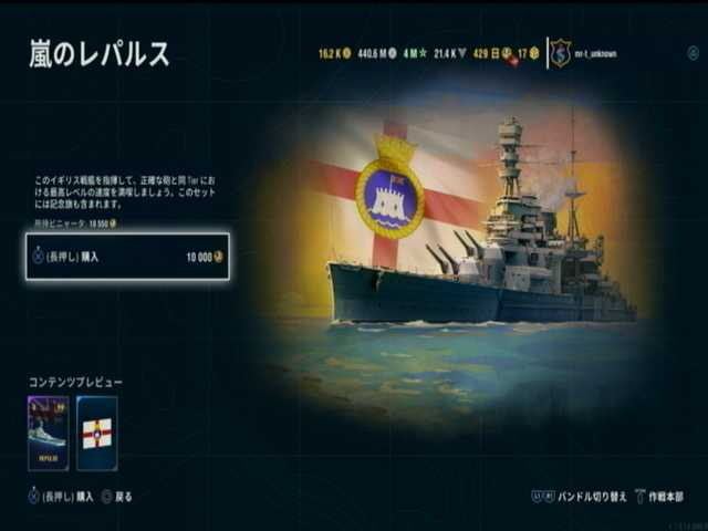 1段目と2段目と3段目は、イギリス戦艦ランク5はレパルス。ピニャータ・ポイント10000で入手が可能で、丁度規定数