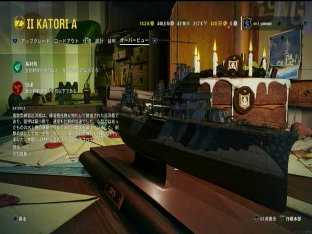 11段目と12段目と13段目は、日本ランク2巡洋艦香取A。PSプラス加入者特典で無料で入手できました。PS5側で