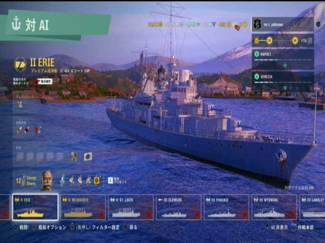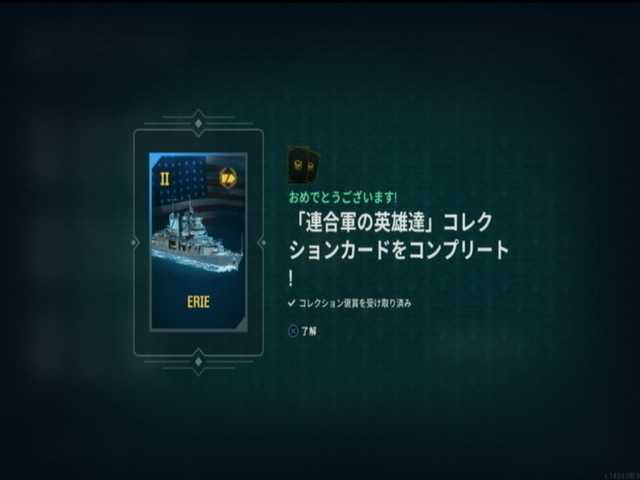 9段目と10段目は、アメリカ巡洋艦ランク2はエリー。コレクション・ウンタラの最終報酬で貰えた艦船と。入手してなかった