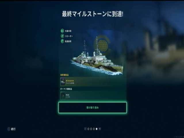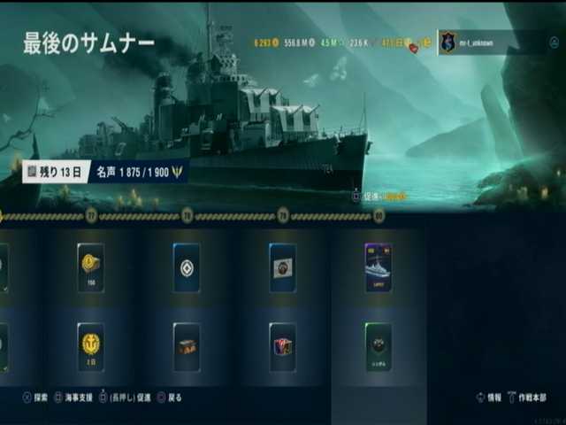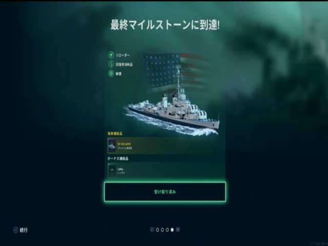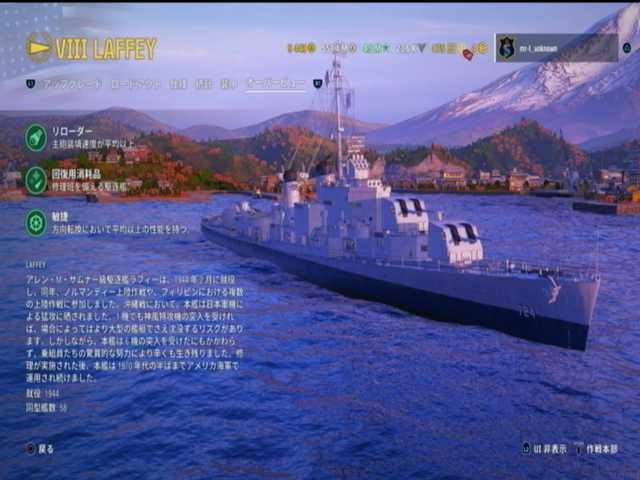10段目と11段目と12段目は、アメリカ駆逐艦ランク8はラフィ。10月度の海事支援の最終報酬と。修理装置と無限仕様の