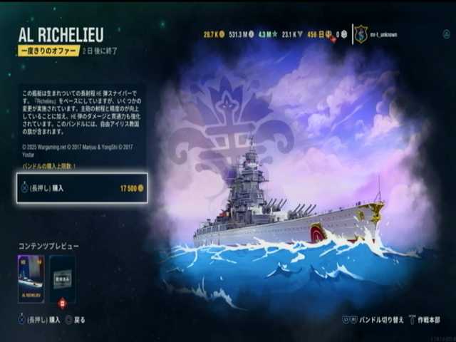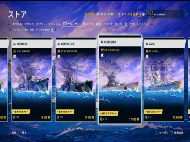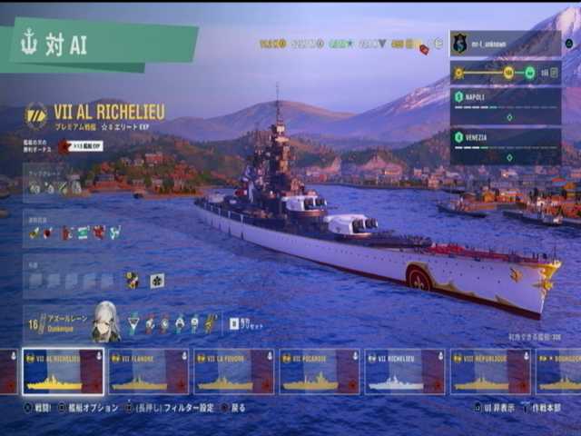 4段目と5段目と6段目は、フランス戦艦ランク7はリシュリューのアズレン版。前々から入手したいと思っていた艦船で><;