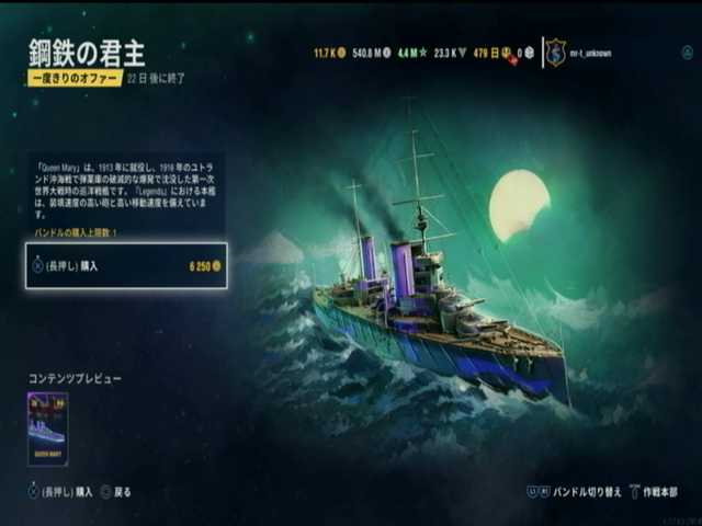 7段目と8段目と9段目は、イギリス戦艦ランク4はクイーンメリー。余っていたダブロンを使っての入手と@@; ランク4の
