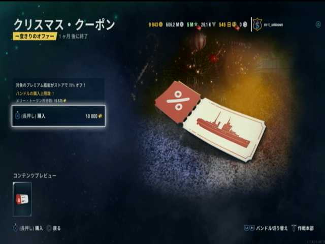7段目は、艦船の割引きクーポン。入手の目的は次の項目に由来してきます@@; まあ該当艦に割引があって良かった感じ