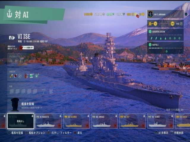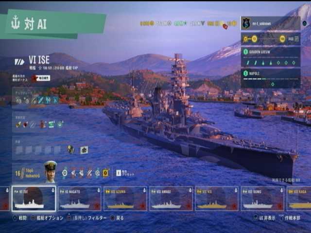 4段目と5段目と6段目の左側と中央は、日本戦艦ランク6は伊勢。1月度のアップデートで正式に追加された戦艦と@@;